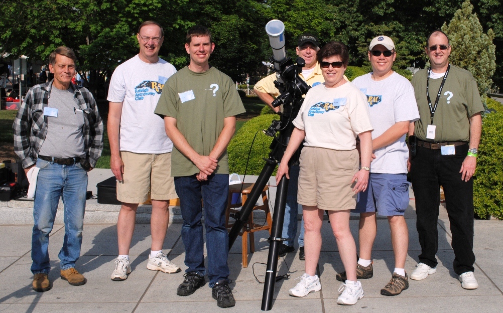 The Raleigh Astronomy Club was set up in three locations. First, there were telescopes set up on Jones Street (which was closed to traffic for the duration of the event. These folks braved the cool temperatures in the early morning hours and stayed set up until the rain came in about 2pm on Saturday. We would also like to recognize some of the students from the North Carolina School of Science and Math who volunteered to help out with this station.