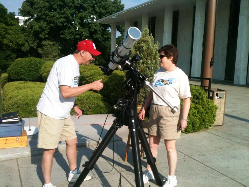 The second area was located on the Green Roof of the new building. Space was limited, so RAC was only able to set up three telescopes. Doug Lively, Gary Scott, and Deven Lively worked many hours helping people get a view of Venus and Mars, when they were not dodging clouds. A number of attendees went up on the green roof to watch the Sunrise on Saturday morning, and it was great, with some nice crepuscular rays.
