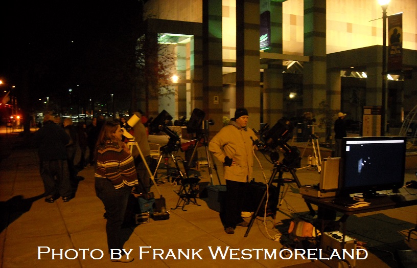 The Raleigh Astronomy Club (RAC) partnered with the North Carolina Museum of Natural Sciences and Time Warner Cable to kick off Thursday Night at the Museum on Febuary 28th. The museum will now be open later into the evening/night on Thursday Nights.  RAC set up 6 telescopes and 1 binocular station outside the museum on the Bicentennial Plaza.  Additionally the club had a table set up inside the Nature Research Center (NRC) near the entrance to provide visitors with more information about the club.