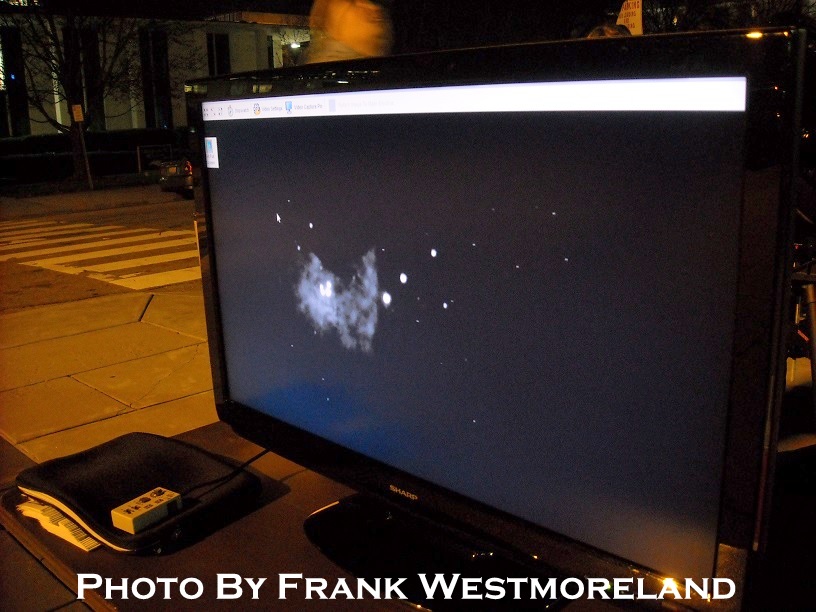 A new addition to the equipment used my club members was an astronomical video camera (a StellaCam3 on loan from member Matt L.).  The video camera took the place of the standard eyepiece and fed real time video frames to a laptop that then projected the images on to a 38″ LCD TV.  This form of video assisted astronomy seemed to be a big hit.