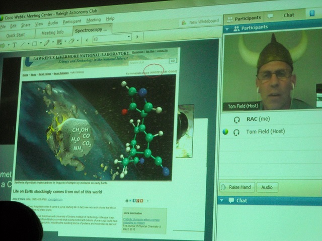 The September indoor meeting feature and on-line presentation from Tom Field, contributing Editor to Sky & Telescope magazine. Tom, from his home in Seattle, provided a great introduction to affordable spectroscopy for amateur astronomers that was both informative and very entertaining.