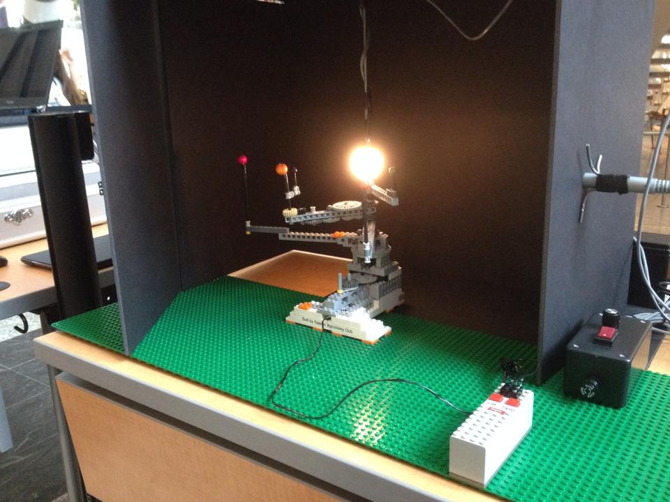 We also set up an Exoplanets exhibit with a lego orrery, photometer and laptop that was used to explain how the Kepler Space Telescope detects planets around other stars. The Exoplanets orrery was a big hit with the kids and Mike K stayed very busy doing demos. We also set up scale models of our Solar System and the Kepler-20, Kepler-30 star systems. Kids enjoyed comparing Earth’s size to other planets and had a lot of great questions.