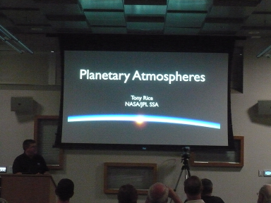This month’s speaker was Tony Rice, one of our local NASA Solar System Ambassadors. His topic was Planetary Atmospheres. Tony began by giving the club members a quiz he normally gives to teachers and broadcast meteorologists. It had 4 questions which our group were able to answer correctly, but the area teachers and TV broadcasters (including the Daily Show with Jon Stewart) had trouble answering.