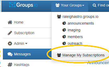 Once logged in, click on “Your Groups” and “Manage my Subscriptions”