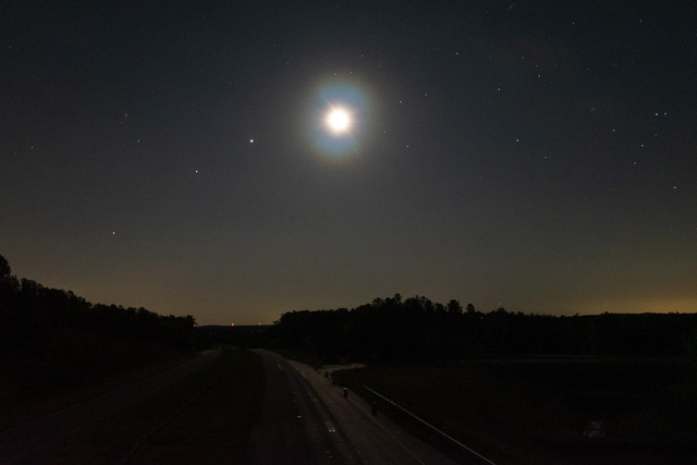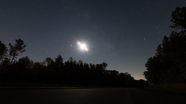 Below are three images (Nikon D5500, 10-20mm zoom, tabletop tripod) from my early morning walk around Pittsboro. To the left of the moon In the 1st and 2nd images are the planets Mars, Saturn, and Jupiter. To the right are the constellations Sagittarius and Scorpius.